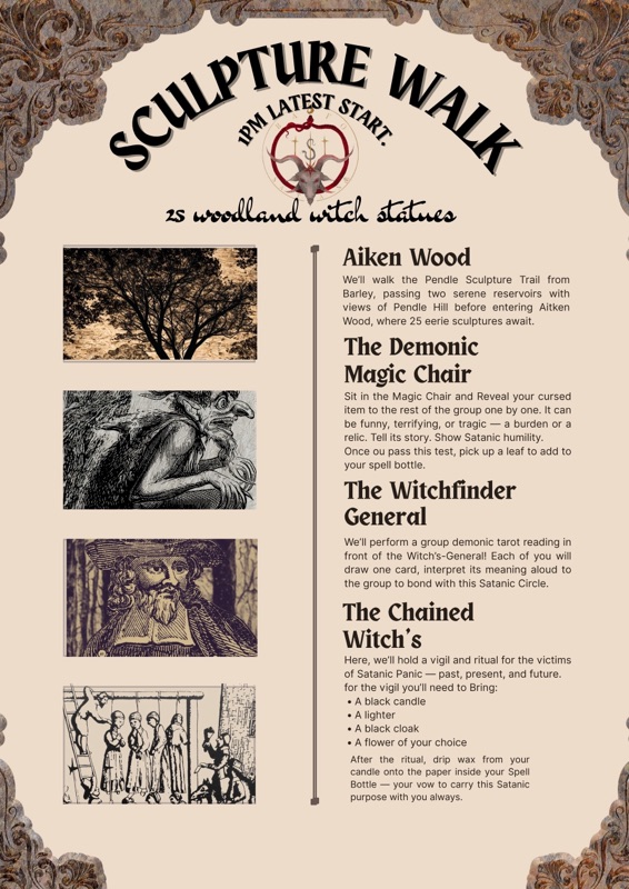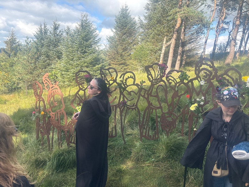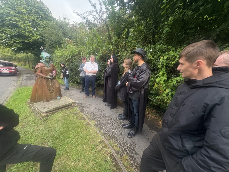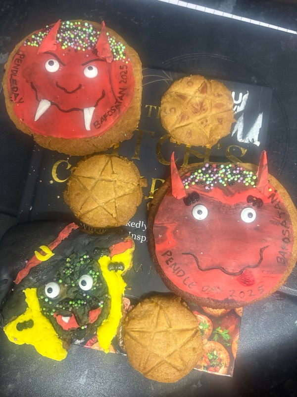 Then came my main event the ritual and vigil for the Pendle witches! Cloaked in my BAFOSatan cape, armed with a cauldron of cookies and a hefty copy of Demonologie, I bellowed my ritual like a hellfire preacher to the crowd of Satanists below. It felt mighty, theatrical, and surprisingly wholesome as we decorated the witch statue with flowers in memory of those persecuted.